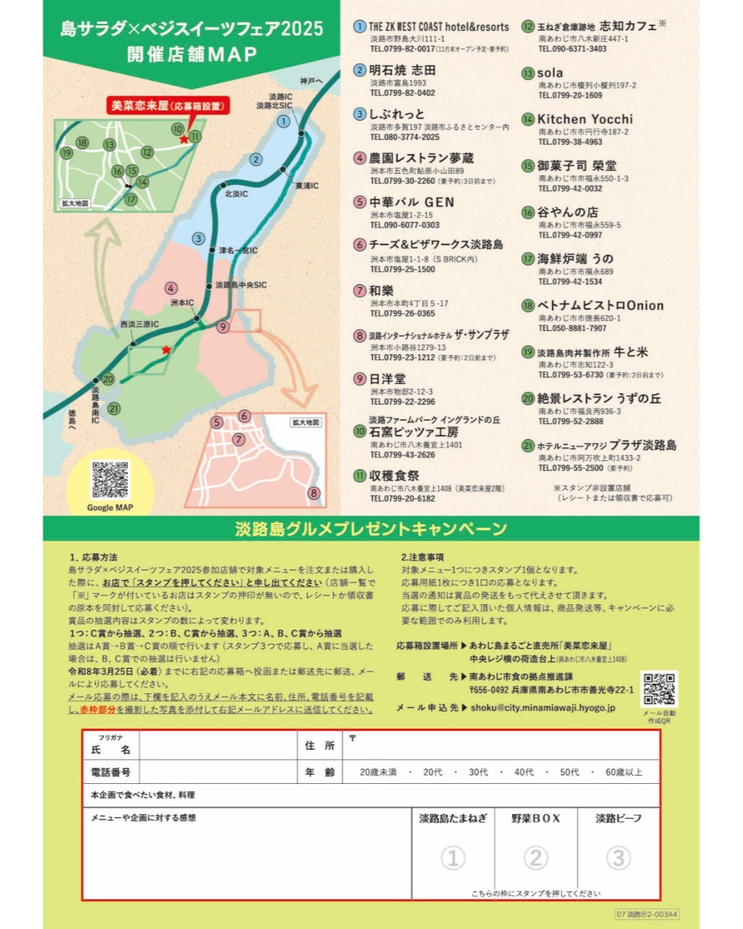 また、抽選で淡路島産食材が当たるスタンプラリーも